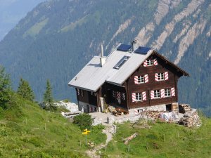 Aufgrund der Wettervorhersage wurde die Reihenfolge kurzfristig umgedreht. Wir gingen zuerst über die Lidernenhütte auf den Chaiserstock mit Drahtseil und Kettenhilfen. In der Ferne sahen wir das Wetter schon kommen. Trotzdem schafften wir es noch trocken bis zur Hütte.
