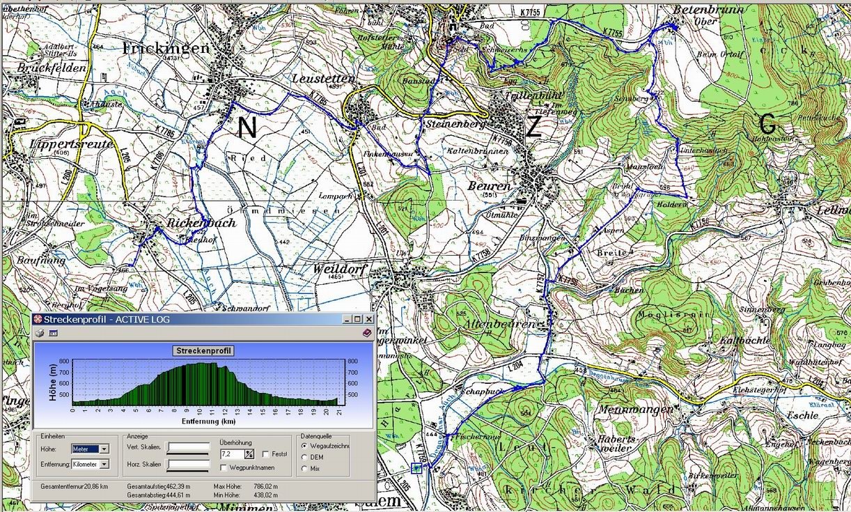 | Karte mit GPSs-Track-Aufzeichnung