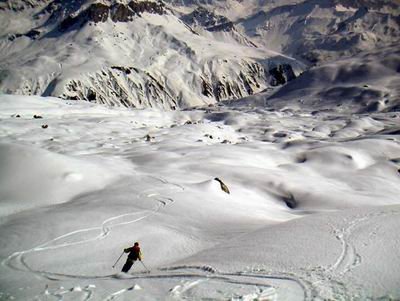 Der Riedchopf gehört zum östlichen Rätikon, der im Madrisahom (2826 rn) seinen höchsten Gipfel aufweist. Auch ihn kann man aus dem Tal von Gafia durch das steile Nordkar mit Ski (und zuletzt kurz zu Fuss) besteigen. Weit häufiger wird jedoch die Madrisa-Rundtour gemacht, die auf geschickte und verschiedene Weisen die beiden irn östlichen Rätikon liegenden Skigebiete von Madrisa ob Klosters (Schweiz) und Schafberg ob Gargellen (Österreich) verbindet. Dabei werden teilweise die Routen zum Riedchopf (auch Ronggspitz genannt) berührt. Er selbst kann als felsiger Grenzgipfel nicht bis zuoberst mit Ski befahren werden. Häufig beschränkt man sich deshalb auf die zwischen ihm und dem Schollberg liegende Kuppe von P 2 540 rn. Das wird man vor allem dann tun, wenn man am Anreisetag noch den Riedchopf überqueren will Dies ist gut möglich, da der Aufstieg über West und die Abfahrt über Nordhänge erfolgt. Kann man schon am frühen Morgen in der Walsersiedlung St. Antönien aufbrechen, so steigt man nach der Abfahrt vom Riedchopf durch die steile Nordrinne noch zum Rotspitz auf Schwierigkeit: G(A)S Der Schlussaufstieg zu Fuss über den kurzen, aber ausgesetzten Südgrat zum Gipfel des Riedchopf kann je nach Schneebedeckung der Felsen heikel sein. Die obersten 80 Hrn in der Riedchopf-Nordrinne sind 33° Lawinengefahr bei viel Schnee oder warmer Witterung irn Aufstieg zum Alpeltitälli sowie beim Pöschenwang, Schneebrettgefahr in der Riedchopf-Nordrinne. Höhenunterschied: Aufstieg 1130 rn; Abfahrt 770 rn; mit Rotspitz je 200 rn mehr. Zeit: Aufstieg 4 Std.; Abfahrt I Std. Abstecher zum Rotspitz. I Std. Lage: Aufstieg W (zuoberst S); Abfahrt N. Aufstieg: Von SL Antönien Platz (1420 rn) auf der Strasse taleinwärts nach Litzirüti am Eingang des Tales von Gafia. Darin auf der linken Talseite, bis man südlich der Siedlung Engi den Gafier Bach (P. 1622 rn) überschreiteL Ostwärts die Talseite hoch zur Alpelti-Hütte (1815 rn). Oberhalb davon in einen Kessel hineinziehen und nördlich des Bachlaufs über einen steiler werdenden Hang, aus dem man rechtshaltend ins Alpeltitälli aussteigL Ostwärts auf eine Rampe hinauf, auf ihr nordwärts zum Kammverlauf (auch Landesgrenze), dem man in eine Lücke zwischen zwei Schneekuppen (die westliche ist P. 2540 rn) folgL Auf die östliche mit Ski und zu Fuss über die Gratschneide auf den Ried chopf (2552 rn). Abfahrt: Von der oben erwähnten Lücke durch die steile Nordrinne ins Tälli hinab Weiter nordwärts durch Mulden östlich von P. 2183 rn und 2115 rn vorbei an den Rand der abschüssigen Pöschenwang. Rechtshaltend ziemlich steil in die untere Talsohle hinab. Rechts des Tällibaches nach Partnunstafel (1769 rn). Bei sicheren Verhältnissen kann auch direkt über die Pöschenwang oder über die Boiler-Hänge weiter westlich davon abgefahren werden. In Partnunstafel Höhe haltend zum Berghaus Alpenrösli (ca.1780 rn) hinüber, das erst zuletzt sichtbar wird. Abstecher zum Rotspitz: Vom Tälli (ca. 2 300 rn) in nordöstlicher Richtung auf ein Flachstück und linksausholend ziemlich steil zum Gipfel des Rotspitz (2516 rn); man kann zuletzt auch dem S-Grat folgen. Ab fahrt wie Aufstieg. Variante: Der Riedchopf kann ebenfalls von der Vorarlberger Seite erreicht werden. Wie Rückreise über Bludenz nach Schruhs, mit dem Bus nach Gargellen, mit den Schafbergbahnen und dem Gargellenkopflift zur Bergstation (ca. 2280 rn). Rechtsausholend auf der Piste hinab in einen breiten Kessel und Schräganstieg ins SL Antönierjoch (2379 rn). Abfallende Querung zur Aufstiegsroute von SLAntönien. 11/2 Std. vom Lift zum Gipfel Information über Bus und Skigebiet bei Verkehrsamt Gargellen, TelO 5557/6303. Wie sich die Zeiten ändern! Die Sulzfluh, so lesen wir irnJahrbuch des Schweizerischen Ski-Verbandes von 1935, "ist sowohl von der Schweizer als von der Vorarlberger Seite aus eine grosse, teilweise hochalpine Skibergfahrt, die wohl unter das erste oder zweite Dutzend besonders grosszügiger Skigipfel der Alpen zu zählen isb,. Peter Keill und Hans Steinbichler meinen in ihrem 1988 erschienenen Bildbandführer "Die grossen Skihütten der Ostalpen und ihre Gipfel" über den 2817m Kalkberg schlicht: "Eine der rassigsten Skitouren der Ostalpen!". Die Autoren sprechen vom gleichen Berg, aber nicht von der gleichen Abfahrt. Die Route von 1935 führt über "das eingesattelte Dach des Sulzfluhrückens, welches irn Sommer ein grosses Karrenfeld trägt, irn Winter aber eine Skiabfahrt, wie man sie grossartiger sich kaum wünschen kann". Die moderne Einschätzung gilt jedoch dem Rachen, einem Steilkar zwischen senkrechten Wänden der Kleinen Sulzfluh und den Ausläufern des Hauptgipfels, das eine geradlinige Abfahrt über 1100 nordseitige Höhenmeter erlaubLWährend der Karrenfeld-Rücken der Sulzfluh eine landschaftlich schöne Route vermittelt, als Abfahrt jedoch kaum Superlative verdient (die Fortsetzung auf Schweizer Seite mit dem unübersichtlichen Karstgelände schon gar nicht), ist die Rachen-Abfahrt tatsächlich ein überaus starkes Stück. Der Name sagt alles. steil, eng und nur zwei Ausgänge. Wer oben in den Schlund einfährt, kommt an einer erst noch fast ungemütlich schmalen und abschüssigen Stelle wieder heil heraus. Für einige Skifahrer wohl eine Grenzerfahrung. Damit das Sicherheitslimit in einer Hinsicht nicht überschritten wird, darf die Sulzfluh ihrem Namen keine Ehre machen. Sulz leitet sich nämlich von sumpfigem Boden ab, und wenn der Schnee diese Qualität aufweist, sollte man den Rachen nicht kitzeln. Andere Grenzen werden jedoch überschritten. Zum einen die staatliche, und zum andern ist die Aussicht von der Sulzfluh fast grenzenlos. ringsum ein Meervon Gipfeln der Ostund Westalpen, und ganz in der Ferne der höchste Berg, der Dom (4545m} Schwierigkeit: SGS. Das Gemschtobel ist oberhalb der kurzen Steilstufe durchschnittlich etwa 25° steil, gut gegliedert mit Absätzen und steileren Rinnen. Die Rachen-Abfahrt ist auf 1000 Hm fast durchgehend st
