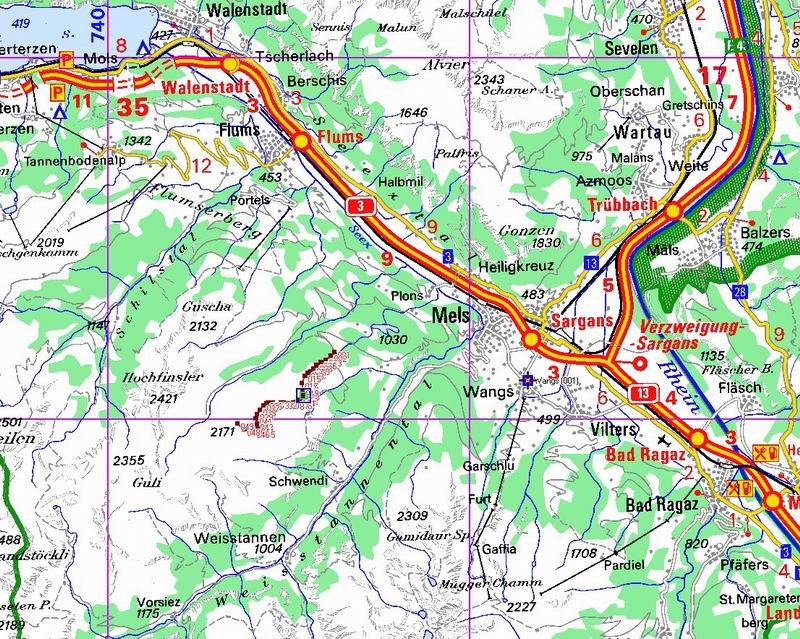 Karte mit eingezeichneter Route (1: 50td) (zum Vergrössern: Doppelklick auf Karte) |