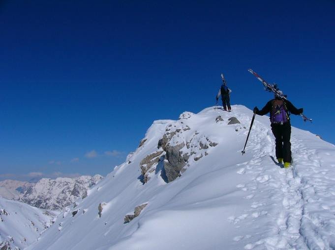 Eine kleine (Rest-)Gruppe (viele Absagen !) verbrachte ein anstrengendes aber erfolgreiches Wochenende im Val Mustair/CH. Durch die Freitagabend-Anfahrt (1 Auto mit 6 Personen, Dank an G. Lindner! ) konnten wir die Samstagtour zum Piz Vallatscha gut ausgeschlafen am frühen Morgen vom Ofenpass (Postbusanfahrt) aus starten. Der alternative Anstieg vom Gasthaus La Vopa zum Piz Dora wurde uns vom Wirt vermiest (Orginalton: wollt ihr eure Skier gleich ruinieren ?) ! Die Bergkette nördlich des Tals hatte mehr Schnee und so starteten wir ab letzter Kehre vor dem Ofenpass. Bedingt durch die tiefen Temperaturen (ca. minus 17° C morgens ) hatten wir nach 10 Minuten die ersten "Klebefellprobleme". Fast alle waren während des Aufstiegs (teilweise parallel zum Lift) davon betroffen und so gab es kleine Verzögerungen. Am letzten Aufschwung des steilen Gipfelhangs mussten die Skier für etwa 50 m getragen werden (Ausnahmen bestätigen die Regel !). Nach ausgiebiger Gipfelrast (für einige aufgrund der Kälte zu lang, aber der Gipfelrundblick bei tiefblauem Himmel von Bernina über Ortler und Silvretta war beeindruckend !) ging es zur Abfahrt, zunächst in den steilen Nordosthang, der aber bis auf die versteckten Felsen unproblematisch war. Lediglich dem Fotografen machte hier die Kälte zu schaffen ! Die NO-Rinne Richtung Plan Mattun bot trotz geringem Schnee und langer Schönwetterperiode doch akzeptablen Pulver, und wir konnten somit die Abfahrt geniessen. Nach kleinem Gegenanstieg zur F. Funt da S-Charl ging es über Pistengelände (einsam, da kein Pistenbetrieb mehr) zurück nach Tschierv bis 100 m vor unseren Gasthof La Vopa !! Die GPS-Aufzeichnung war ab Gipfel leider unterbrochen, da durch die Kälte die neuen Batterien bereits nach 5 h den Geist aufgaben ! Handy- und Foto-Accus ebenso !! Der geplante Abstecher zum Kloster St. Johann in St. Maria fiel leider dem " Nachmittagsnickerchen" zum Opfer ! Dafür vergnügte sich der männliche Teil der Gruppe abends im Ort auf dem "Maskenball" mit "illegaler Tanzeinlage" ( die Fasnachtsregeln werden hier im reformierten Teil des Val Mustair nicht so eng gesehen). Am Sonntagmorgen ging es ab Buffallora Richtung Piz Daint. Diesmal hatten wir die Fellle bereits im Schlafzimmer aufgezogen und so gab es diesmal keine Probleme. Das Wetter hatte sich von Norden etwas eingetrübt; über den Westgrat fegte ein "scharfes Lüftchen", was uns veranlasste, den Grat komplett mit Harscheisen und in geschlossener Gruppe (zum Gipfel durchgehend mit Ski) anzugehen. Nach kurzer Gipfelrast ging es zunächst über den Westrücken, dann über eine kleine Wächte in die NW-Flanke und dort über toll geneigte Pulverschneehänge mit häufiger "Feindberührung" zurück Richtung Ofenpass. Die N-Steilrinne direkt nach Murtaröl wäre von der Lawinenlage (2) eventuell fahrbar gewesen, wir verzichteten jedoch darauf ( Einfahrt über 40°). Durch ein kleines Hochkar (Ofenpass links liegenlasssend) ging es dann zügig abwärts bis wir ab Val Plaun die Piste nach Tschierv erreichten. Die Heimfahrt durch den Vereinatunnel war unproblematisch, nur vereinzelte Staus... und Sonntagabend in Uhldingen hatten wir den meisten Neuscheee !! Fazit: schöne komplette Touren mit weiter Anfahrt... und diesmal etwas wenig Schnee Üb., d. 01.03.2005 w.b. |