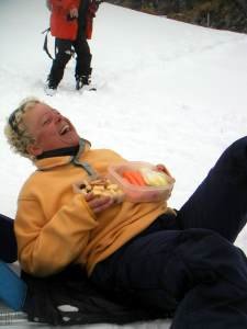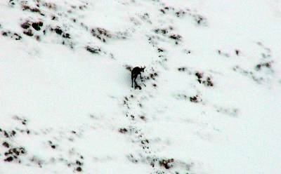 | Gams am Gegenhang (ca 100 m Entfernung) | Margrit mit nur einem Ski |