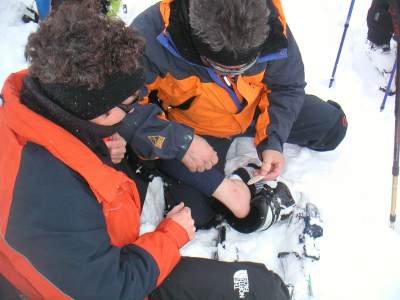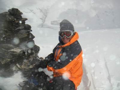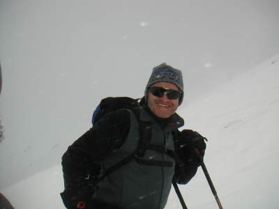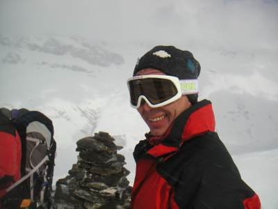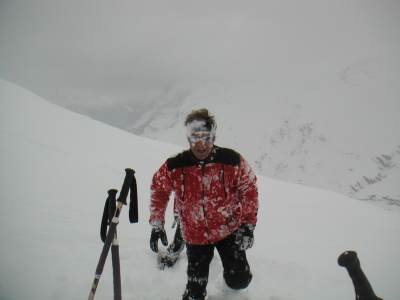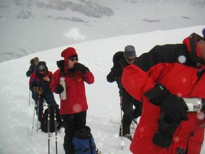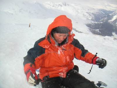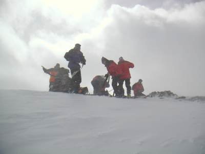 | Gruppe im Föhnsturm | am Gipfel des Grosshorns - Kampf mit den Fellen |