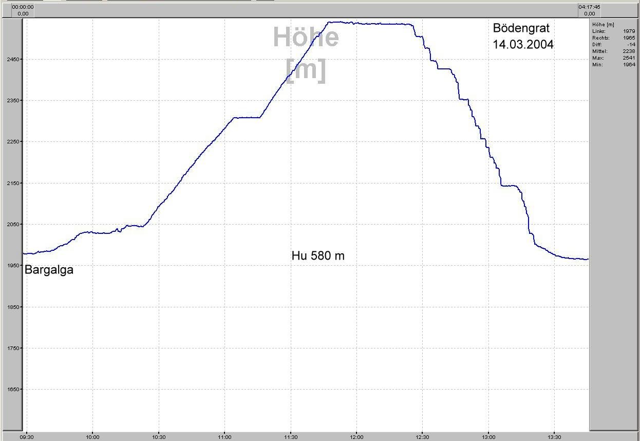 Höhenprofil Bödengrat mit Hactronic aufgezeichnet