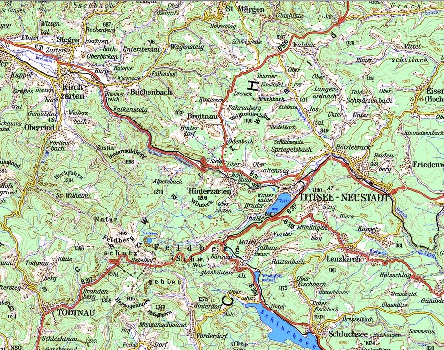 Karte Südschwarzwald (1: 50td) (zum Vergrössern: Doppelklick auf Karte) |
