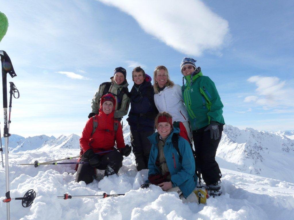 Tourenleitung: Franziska Heidenreich Teilnehmerinnen: Brigitte Laube, Gabriela Lindner, Barbara Michelmichel, Carolyn Trittel, Monika Vogler, am Samstag: Maja Heidenreich und Antje Rödig Samstag, 28. Januar 2012: Die Anreise vom Bodensee war noch wenig motivierend Regen und Verzögerungen durch schwer bewaffnete Kontrollen vor Davos wegen des Weltwirtschaftsgipfels. 10.15: Von Frauenkirch aus machen sich diesmal 8 Ladies auf den Weg zum Chörbsch Horn (2650m). Zunächst geht es durch Wald zur Stafelalp, leichter Schneefall begleitet uns noch, teils auch dichterer Nebel. Mit der Höhe setzt sich aber immer mehr blauer Himmel durch, die letzten 100m geht es im Sonnenschein zum Gipfel, den wir nach 4 ½ Stunden glücklich erreicht haben. Fantastischer Blick auf die verschneite Bergwelt, unter uns verdecken Wolken das Tal! Traumhafte Abfahrt durch unverspurten Pulverschnee bis im Nebel kaum noch die Hand vor Augen zu sehen ist. Das entschädigen dann Schoki-Melange und Kuchen beim Einkehrschwung auf der Stafelalp. Zurück in Frauenkirch müssen wir Maja und Antje leider verabschieden, fahren dann hoch ins Sertigtal Unterkunft im netten 6er-Zimmer Hotel Walserhuus herrlich heiße Dusche Abendessen mit Bündner Spezialitäten. Sonntag, 29.Januar: Um 8.00! Uhr erwartet uns ein super Frühstück, draußen ist bereits klarer Himmel. 9.45: Aufbruch zum Gfroren Horn (2744m), ein gemütlicher und harmonischer Aufstieg von 888 Hm Franziska legt wieder eine perfekte Spur eine erholsame Pause mit geschaufelter Sitzgelegenheit gibt Energie für die zweite Hälfte des Anstiegs die letzten Meter auf den Sattel sind etwas steinig und mühsam. Vom Skidepot dort führt noch eine 20-min. Gratwanderung auf den Gipfel von dort toller Panoramablick ohne Wind. Der Gipfel des Wochenendes ist aber die traumhafte Abfahrt steilere und flachere unberührte Pulverschneehänge, beste Sicht und allseits gute Laune und Freude über diese herrlichen Tage. Danke Franziska! |